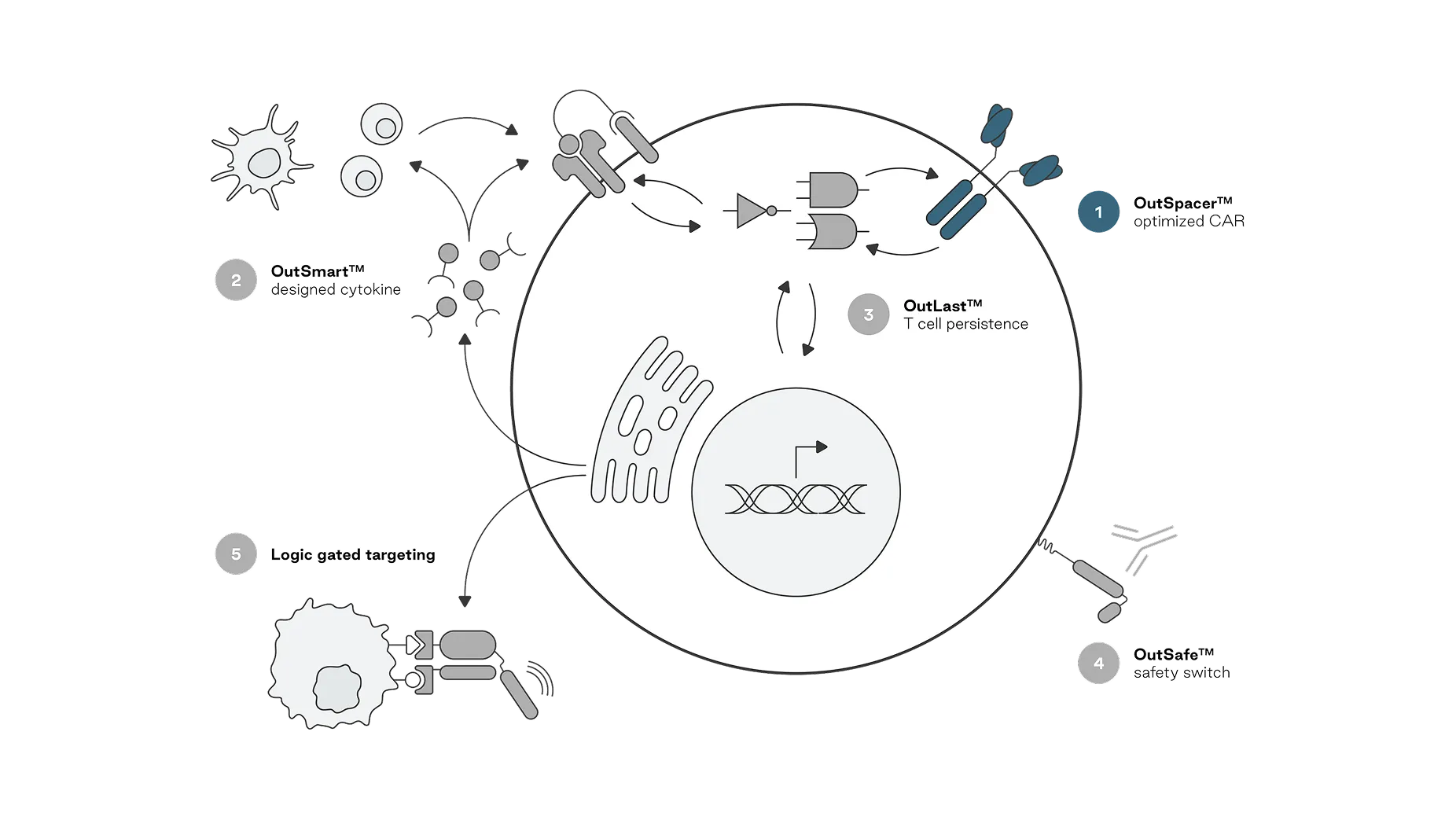 By programming cells to make the right decisions inside patients, Outpace Bio™ technologies stimulate productive immune responses in the tumor microenvironment (OUTSMART™), enable potent and persistent cell therapy activity (OUTLAST™), and maximize the potency (OUTSPACERS™), safety (OUTSAFE™) and specificity of cell therapies across diverse cancer indications.